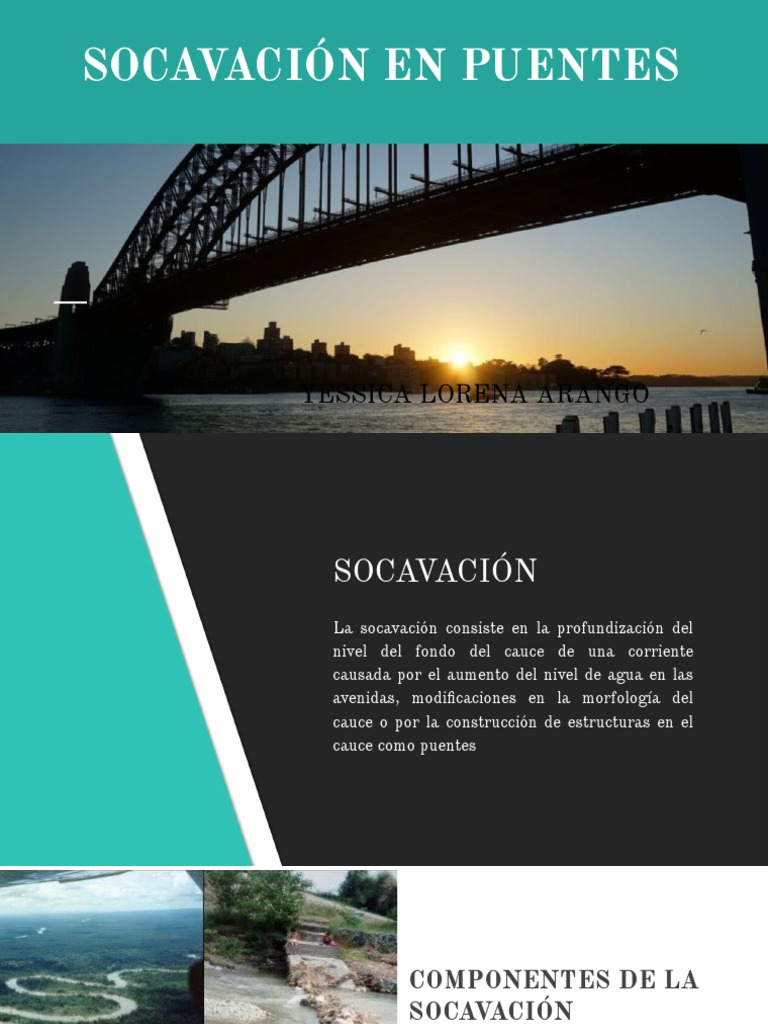 2. Socavación por produce erosión en el fondo de la corriente. Al