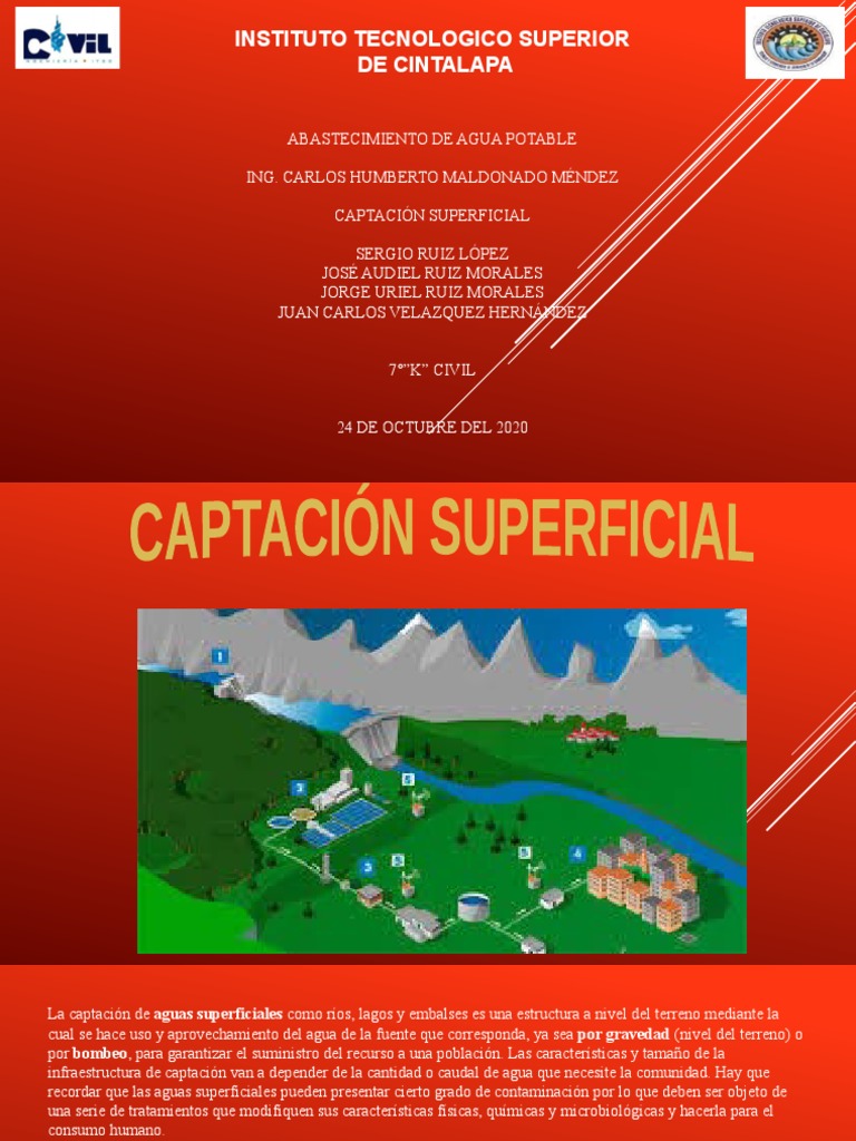 La captación de aguas superficiales como ríos, lagos y embalses es una estructura a nivel del terreno mediante la