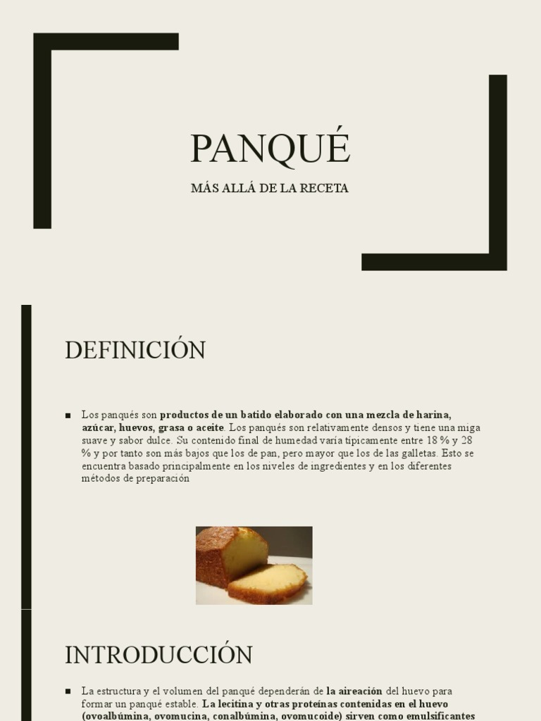 procesamiento de horneado, dando como resultado un panqué con atributos de calidad
