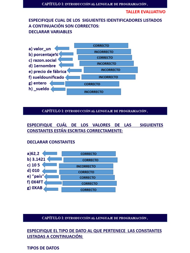 ESPECIFIQUE EL TIPO DE DATO AL QUE PERTENECE LAS CONSTANTES