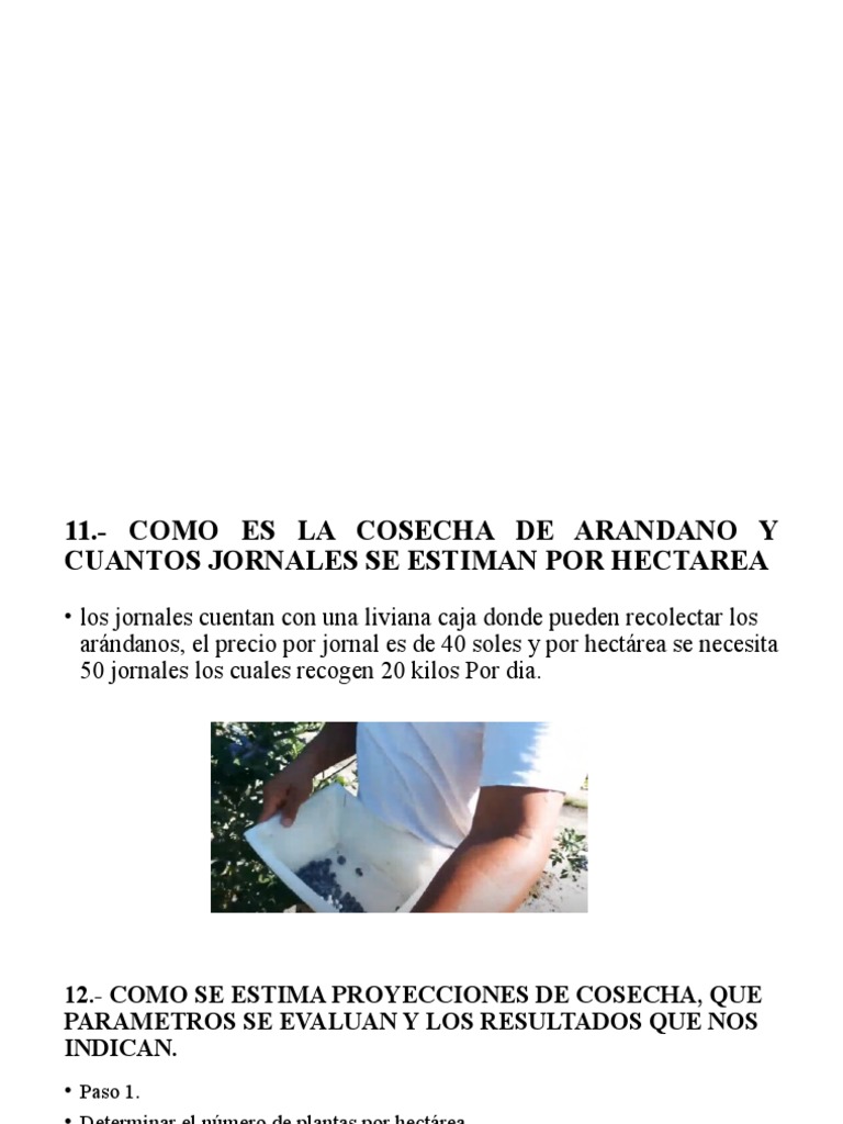 arándanos, el precio por jornal es de 40 soles y por hectárea se necesita
