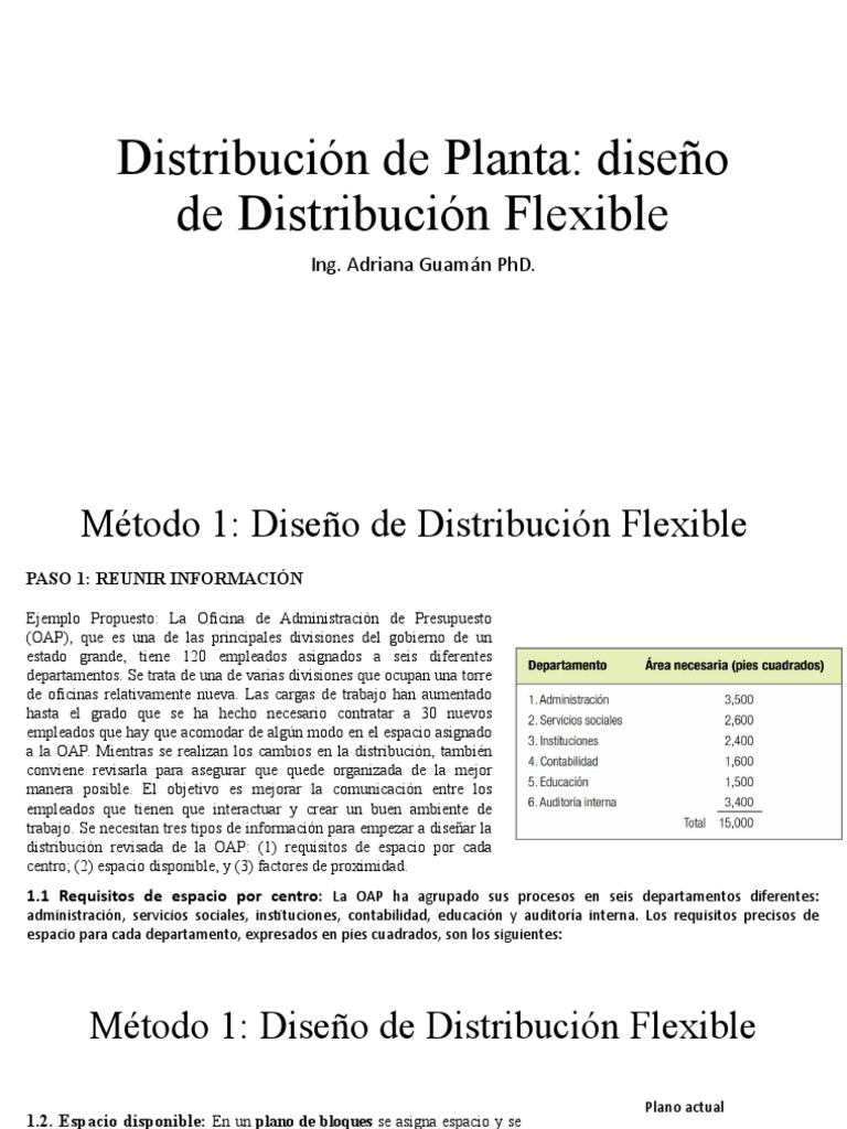 distribución revisada de la OAP: (1) requisitos de espacio por cada