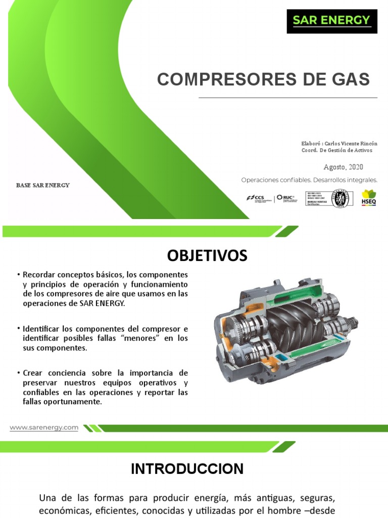 Un compresor es una máquina capaz de elevar la presión del gas que maneja. En la industria la