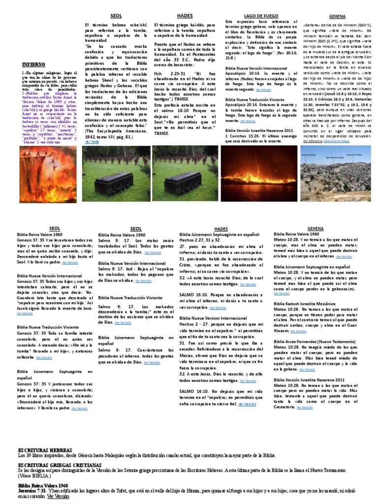 1.-En algunas religiones, lugar al la palabra infierno el vocablo Hch 2:25-31 “Ni fue Apocalipsis 20:14. La muerte y el versículos como «valle de Hinón», «valle