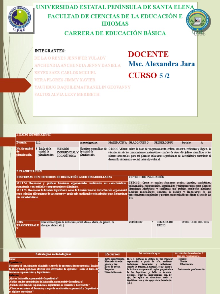 planificación: planificación: LOGARÍTMICA planificación: saberes ancestrales, para así plantear soluciones a problemas de la realidad y contribuir al