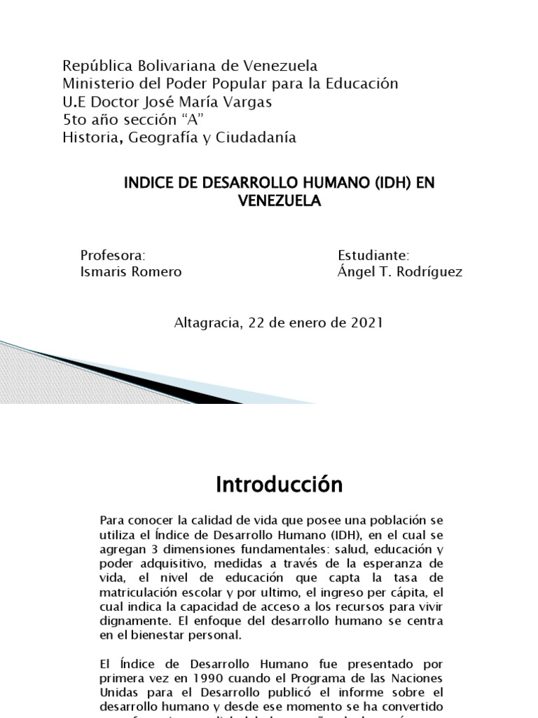 INDICE DE DESARROLLO HUMANO (IDH) EN