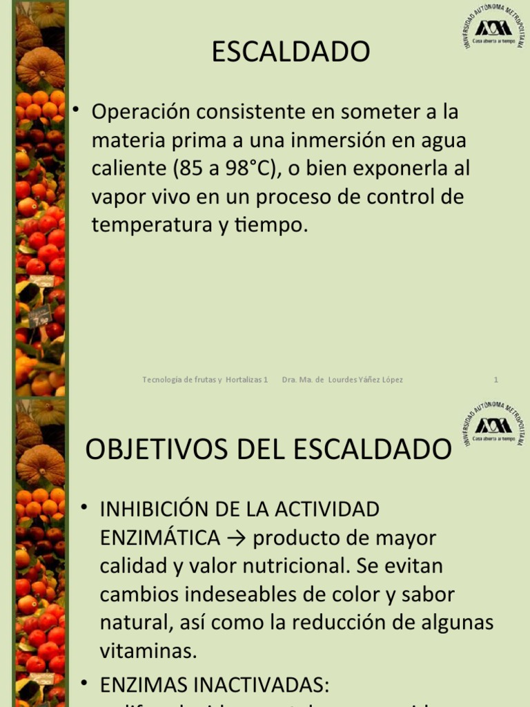 Tecnología de frutas y Hortalizas 1 Dra. Ma. de Lourdes Yáñez López 1