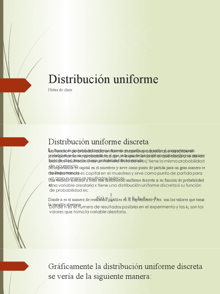 Una variable aleatoria x tiene una distribución uniforme discreta si su función de probabilidad