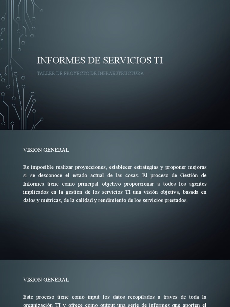 Las principales actividades de la Gestión de Informes de servicios TI se resumen