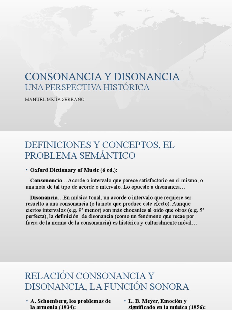 perfecta), la definición de disonancia (como un fenómeno que recae por