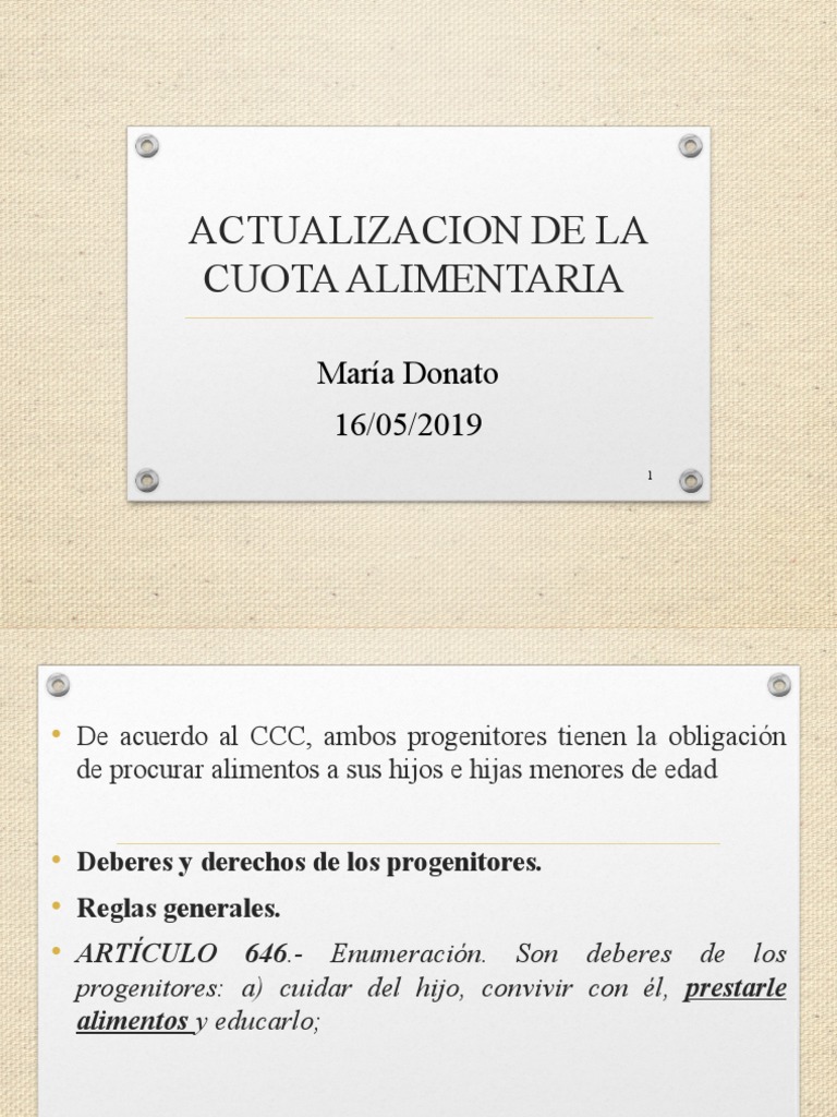 la posibilidad de actualizar la cuota alimentaria a fin de evitar el