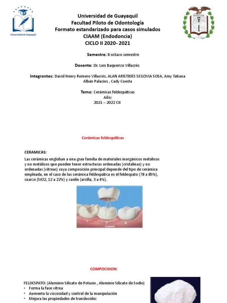 empleada, en el caso de las cerámica feldespática es el feldespato (78 a 85%),