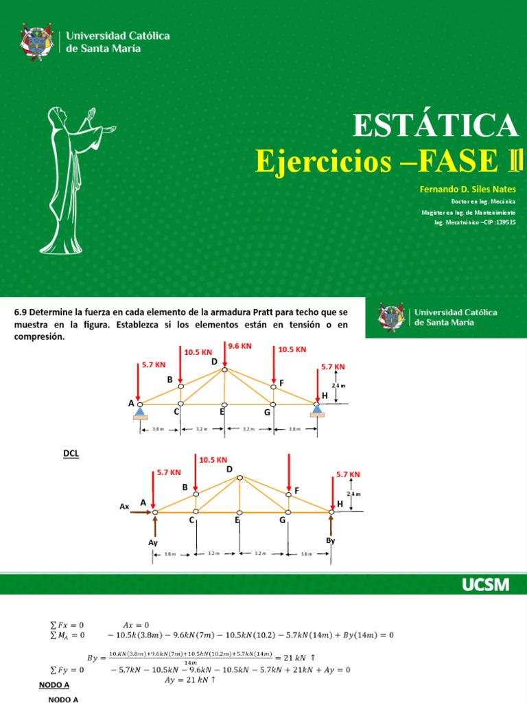6.9 Determine la fuerza en cada elemento de la armadura Pratt para techo que se