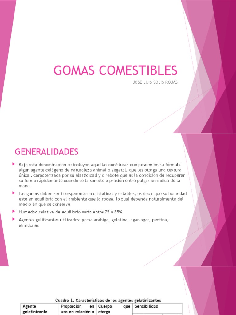 Agentes gelificantes utilizados: goma arábiga, gelatina, agar-agar, pectina,