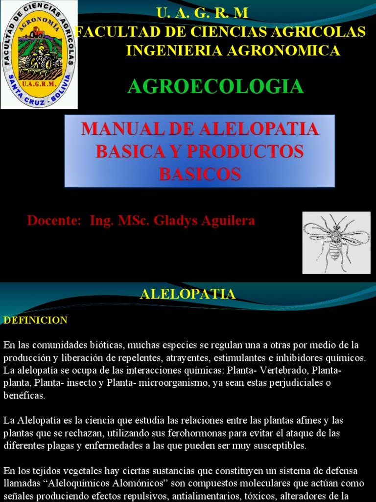 del impacto de los aleloquimicos en la dinámica y proyección de los mismos, debe conducirnos