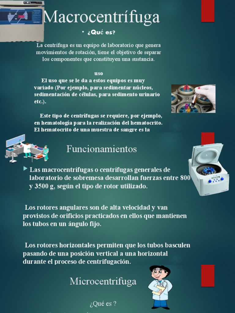 La centrífuga es un equipo de laboratorio que genera