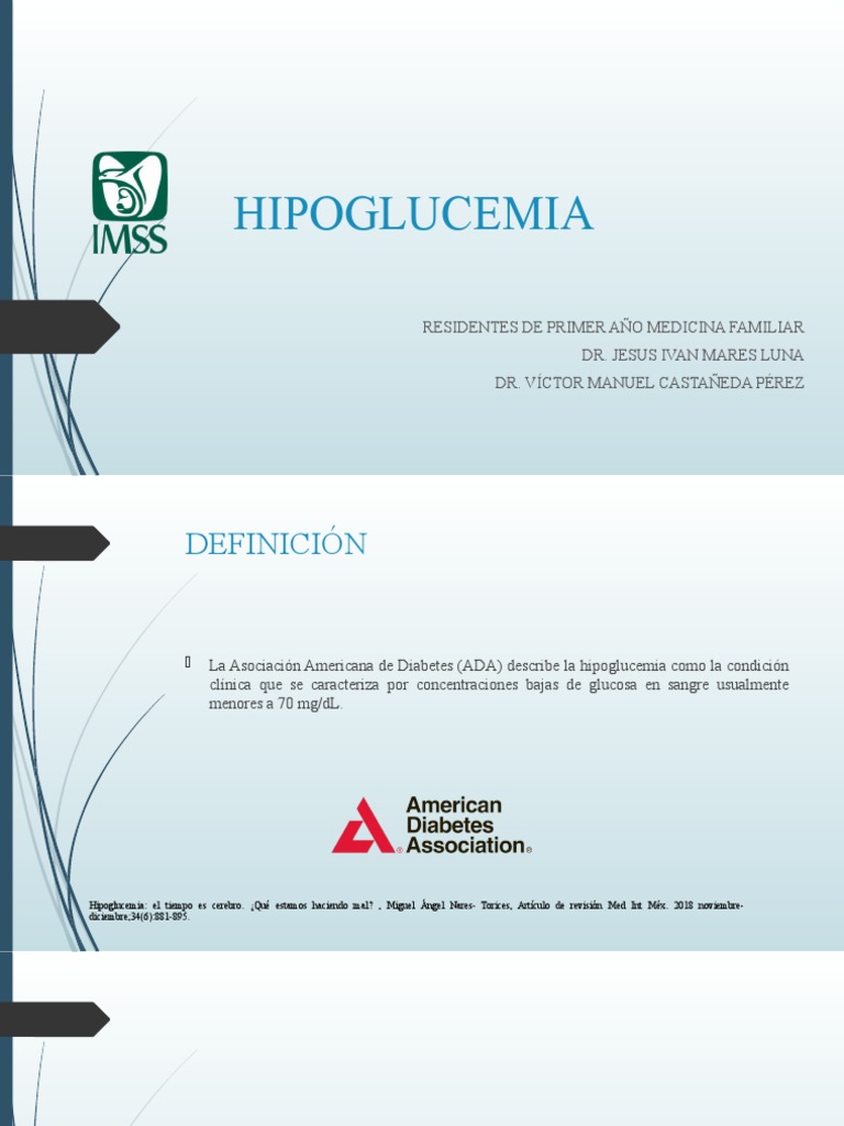La Asociación Americana de Diabetes (ADA) describe la hipoglucemia como la condición
