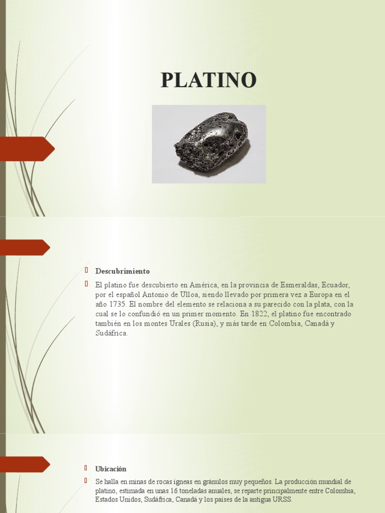 El platino fue descubierto en América, en la provincia de Esmeraldas, Ecuador,