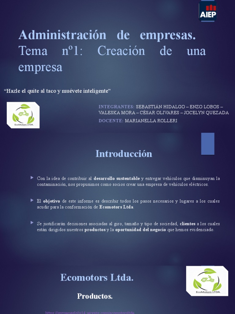 contaminación, nos propusimos como socios crear una empresa de vehículos eléctricos.