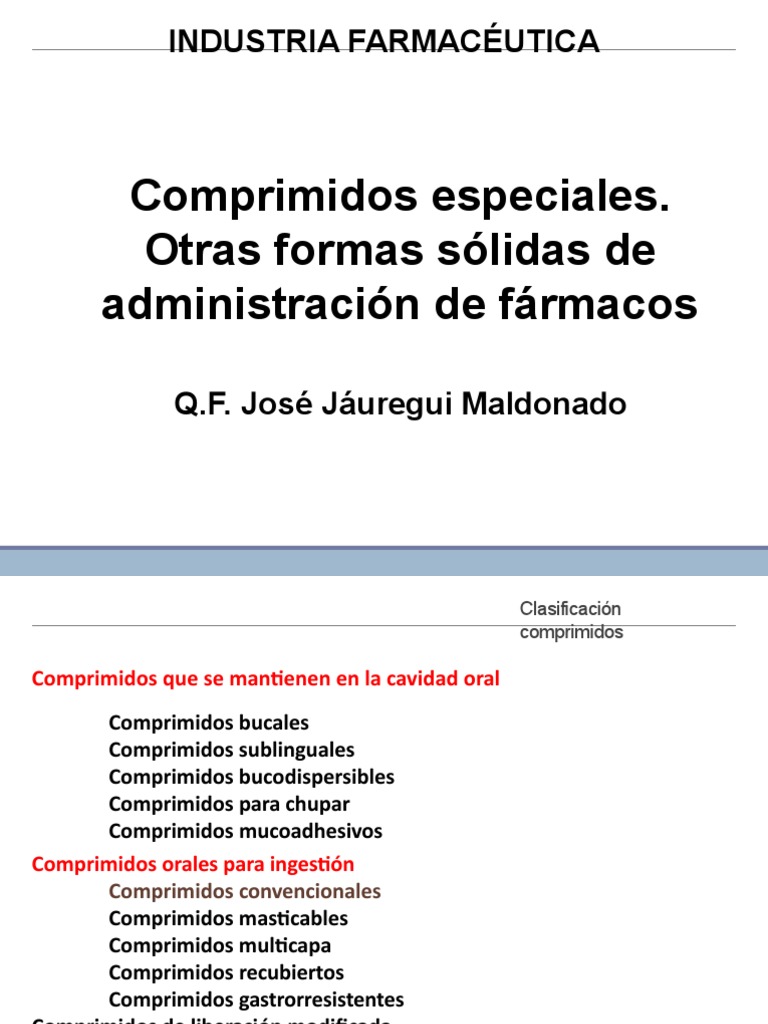 • Calvo B, Esquisabel A, Hernández R, Igartua M, Comprimidos