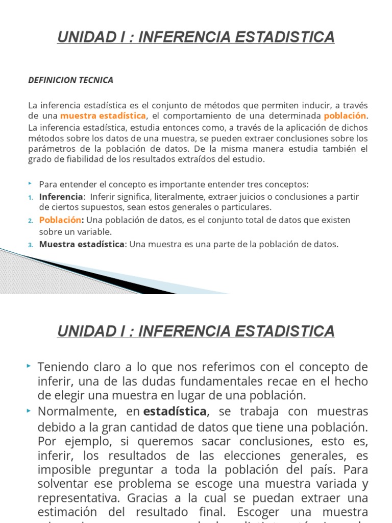 UNIDAD I : INFERENCIA ESTADISTICA