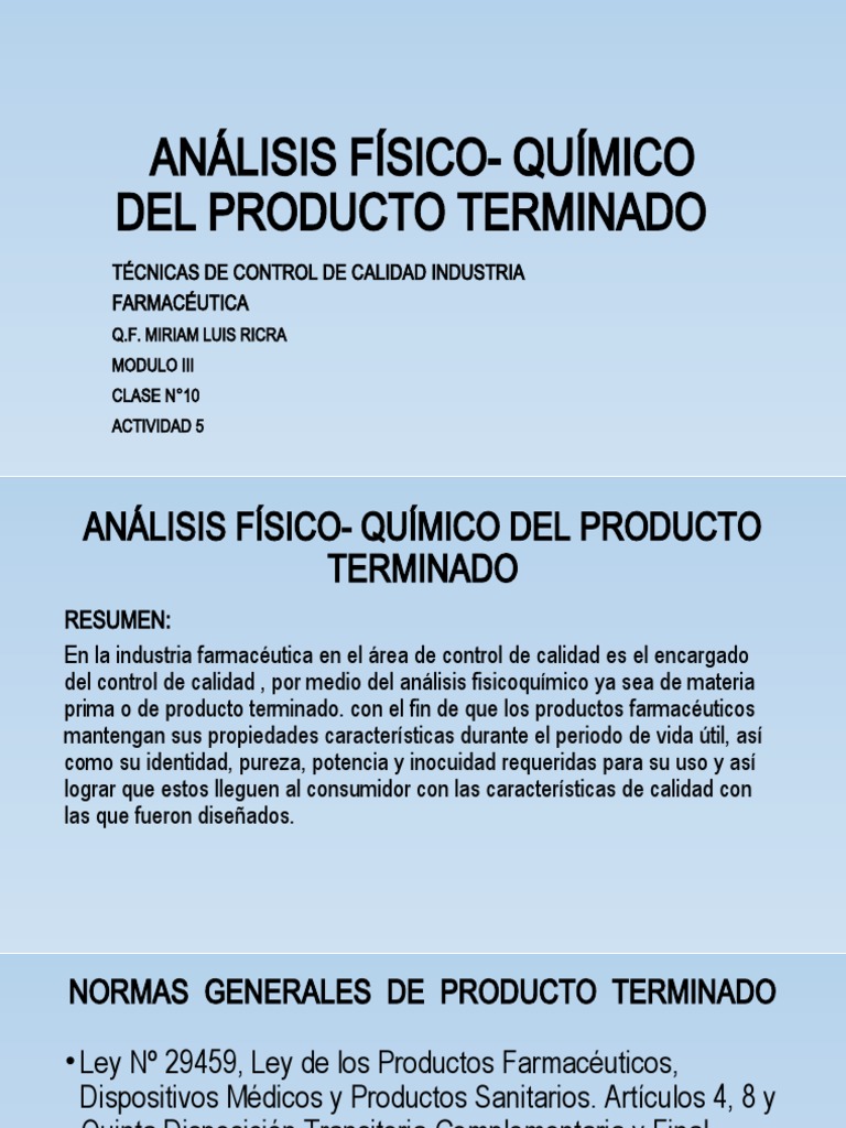 del control de calidad , por medio del análisis fisicoquímico ya sea de materia