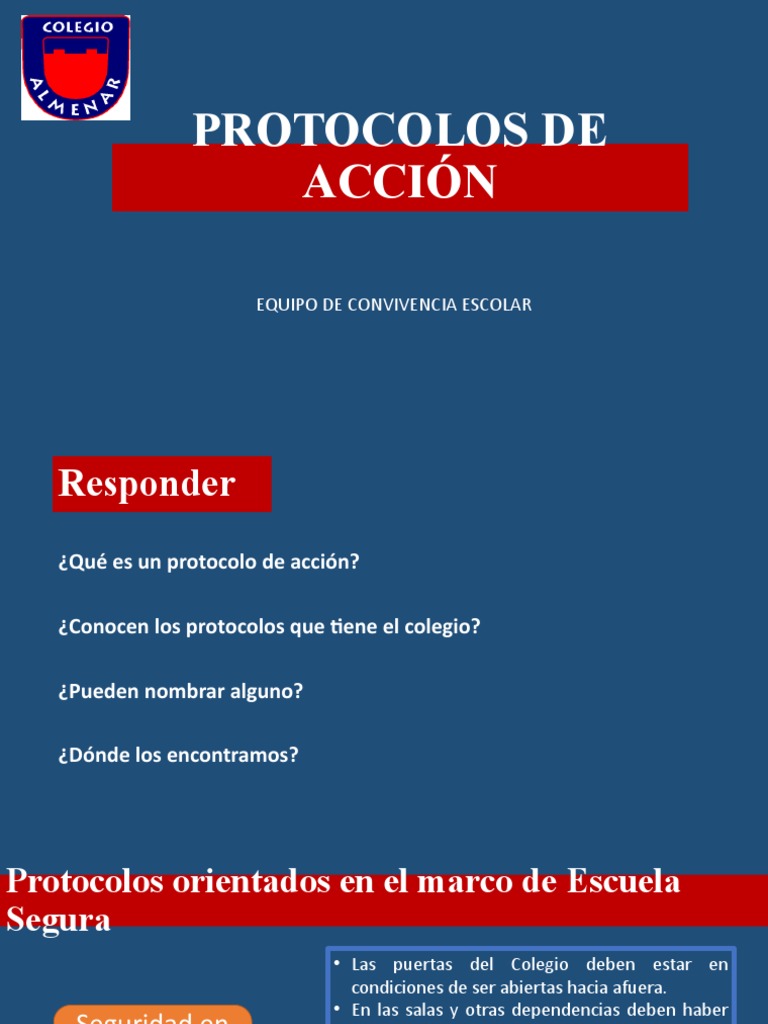 • Escoger uno de los protocolos trabajados: sismo, incendios, seguridad dentro