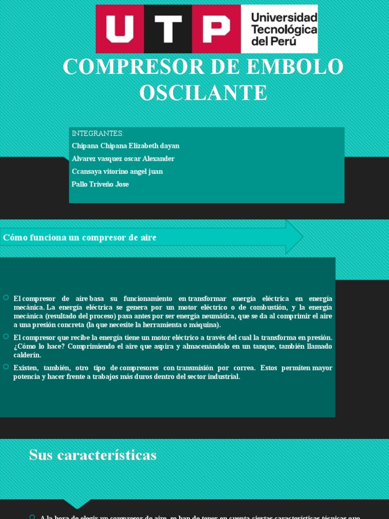 Es el compresor mas difundido a nivel. industrial, dada su capacidad de trabajar en cualquier