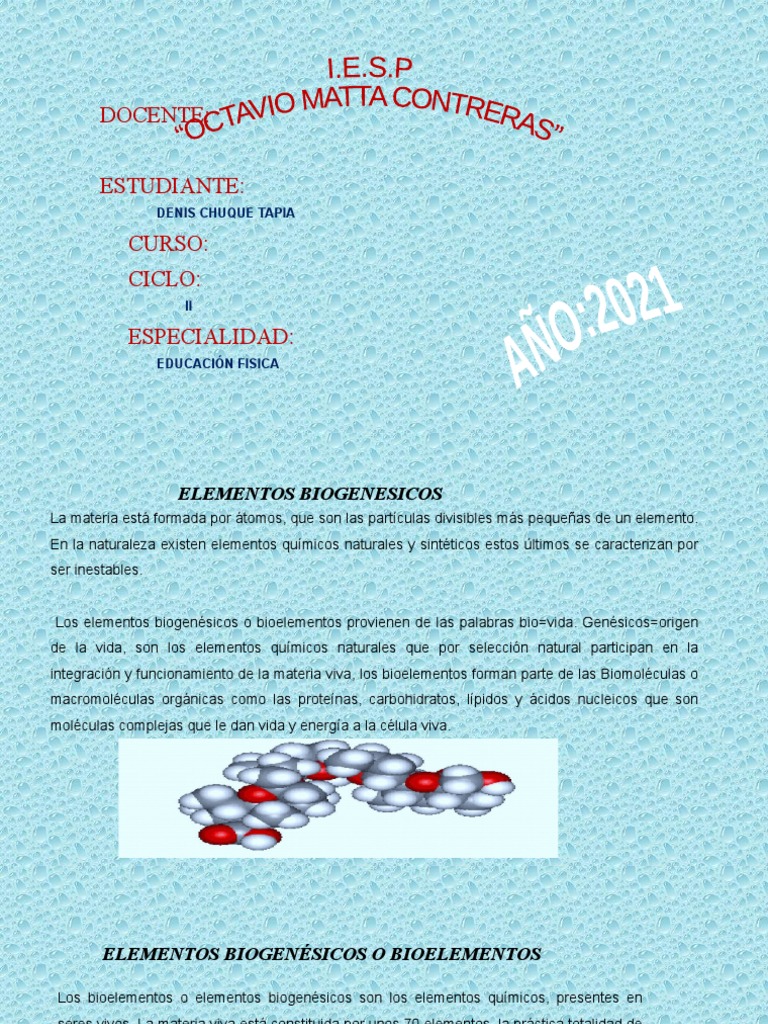 Los bioelementos o elementos biogenésicos son los elementos químicos, presentes en