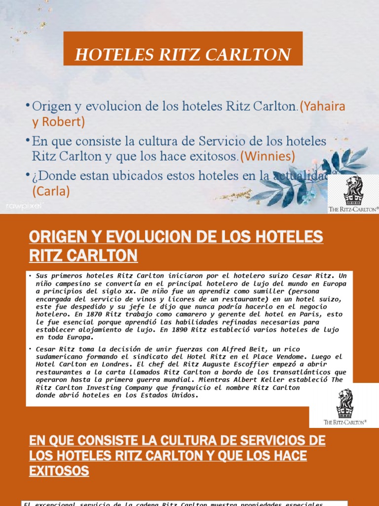 • Origen y evolucion de los hoteles Ritz Carlton.(Yahaira