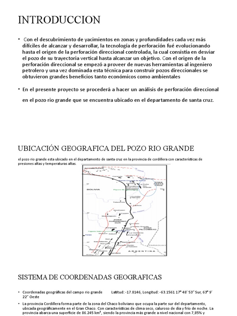 • Coordenadas geográficas del campo rio grande Latitud: -17.8146, Longitud: -63.1561 17° 48′ 53″ Sur, 63° 9′