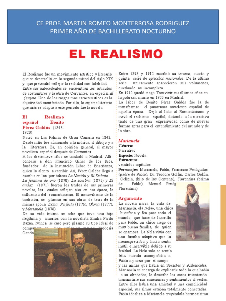 El Realismo fue un movimiento artístico y literario Entre 1898 y 1912 escribió su tercera, cuarta y