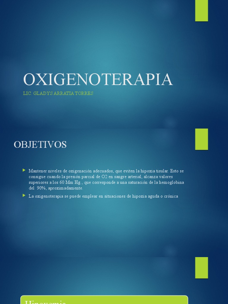 La oxigenoterapia se puede emplear en situaciones de hipoxia aguda o crónica