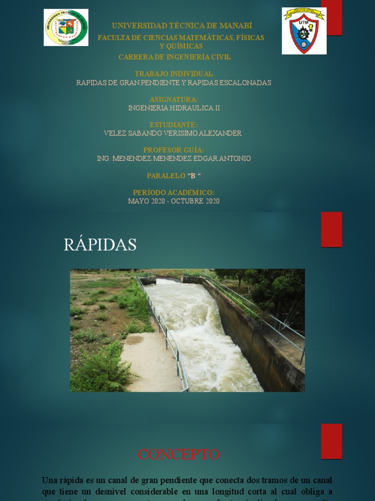 Una rápida es un canal de gran pendiente que conecta dos tramos de un canal