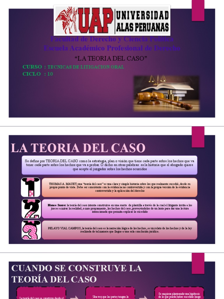 PELAYO VIAL CAMPOS, la teoría del caso es la narración lógica de los hechos, es un relato de los hechos y de la ley