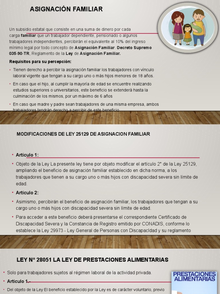 • Asimismo, percibirán el beneficio de asignación familiar, los trabajadores que tengan a su