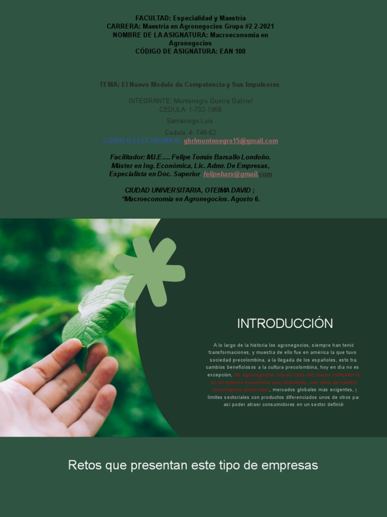 CARRERA: Maestría en Agronegocios Grupo #2 2-2021