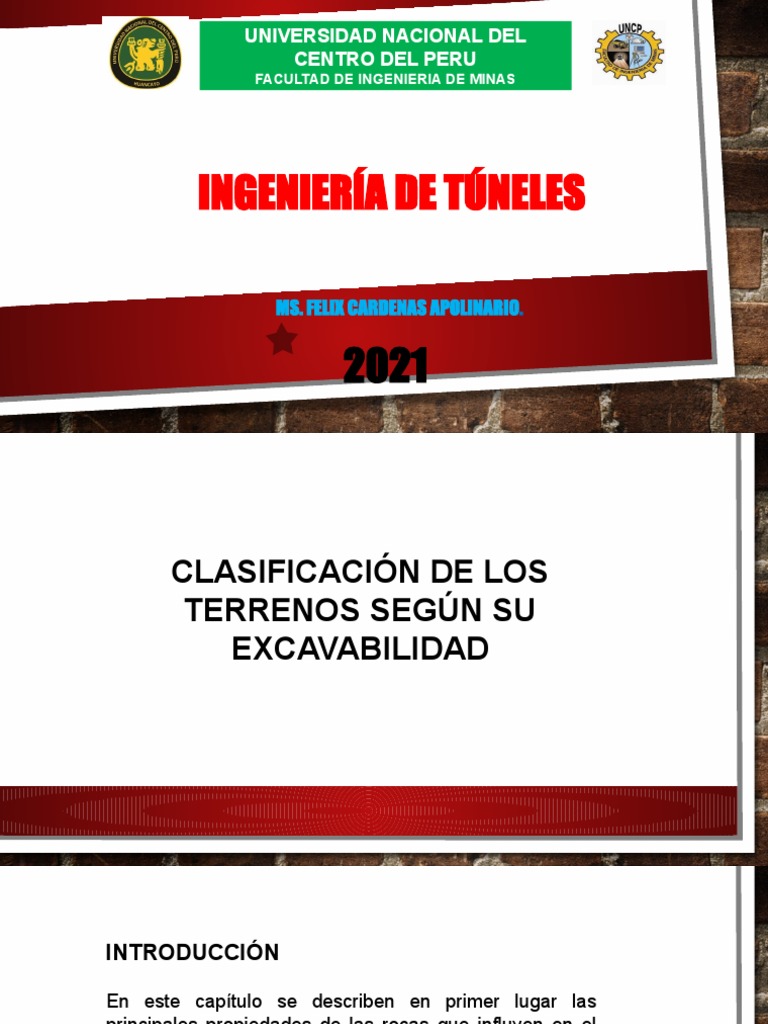 excavación es posible hasta un RMR Rock Mass Rating) de