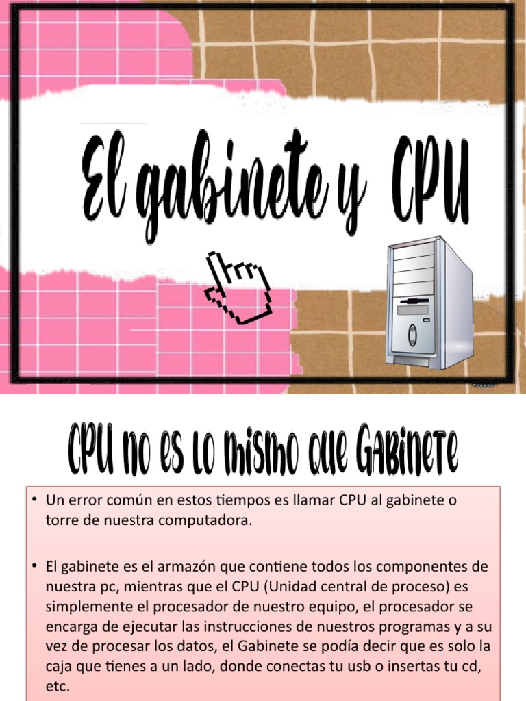 • Un error común en estos tiempos es llamar CPU al gabinete o
