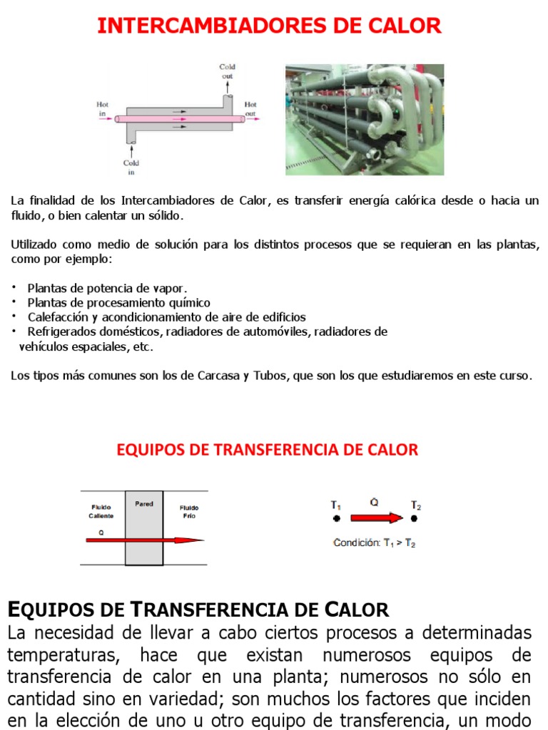 La finalidad de los Intercambiadores de Calor, es transferir energía calórica desde o hacia un