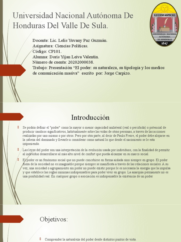 Trabajo: Presentación “El poder: su naturaleza, su tipología y los medios