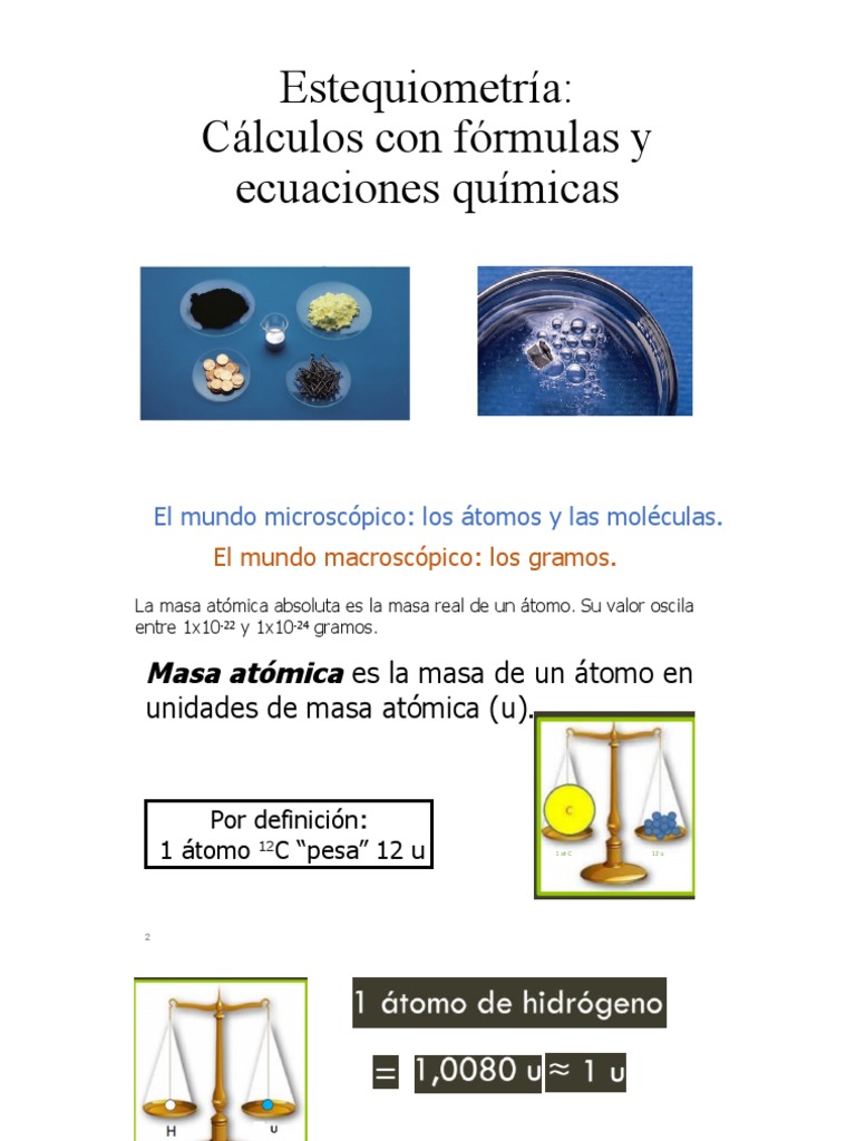 1 átomo 12C “pesa” 12 u 1 at C 12 u