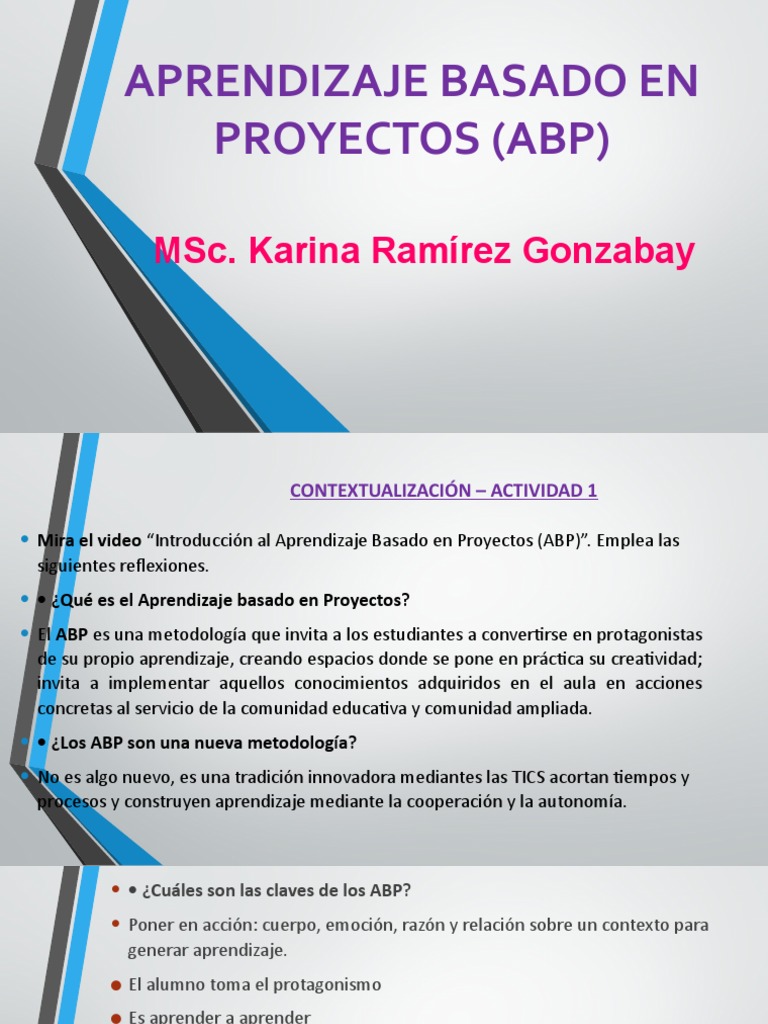 • Mira el video “Introducción al Aprendizaje Basado en Proyectos (ABP)”. Emplea las