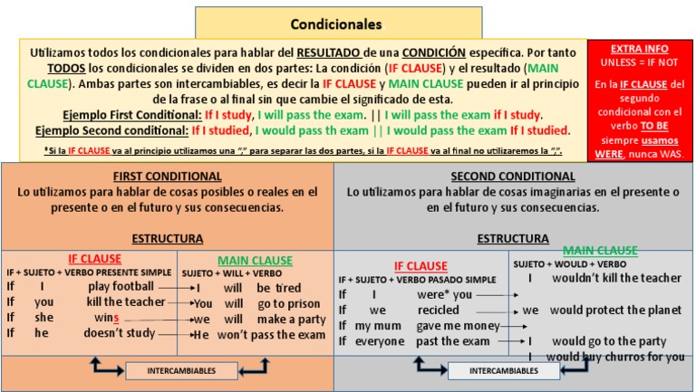 Ejemplo First Conditional: If I study, I will pass the exam. || I will pass the exam if I study. condicional con el