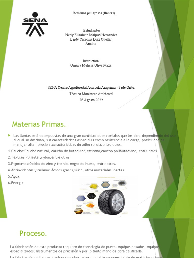 Una llanta esta compuesta por 30 tipos de distintos de cauchos, rellenos otros ingredientes que se