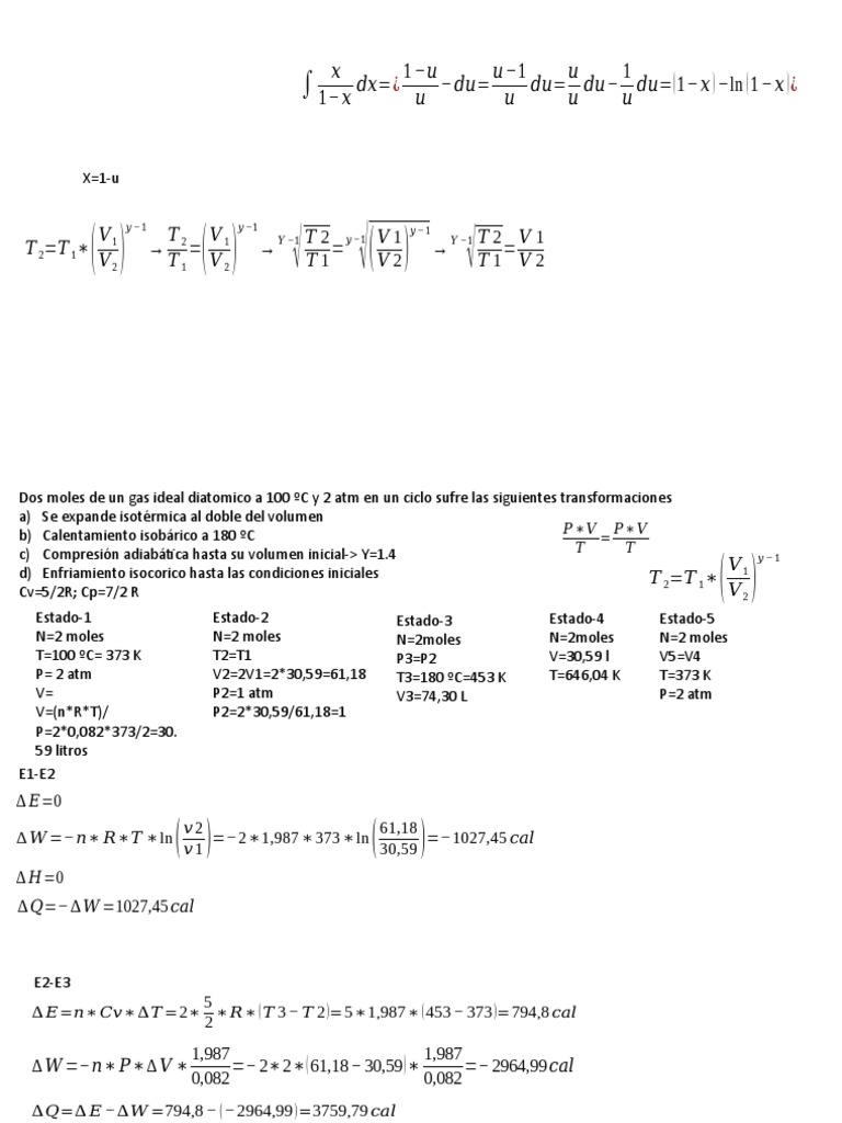 Dos moles de un gas ideal diatomico a 100 ºC y 2 atm en un ciclo sufre las siguientes transformaciones