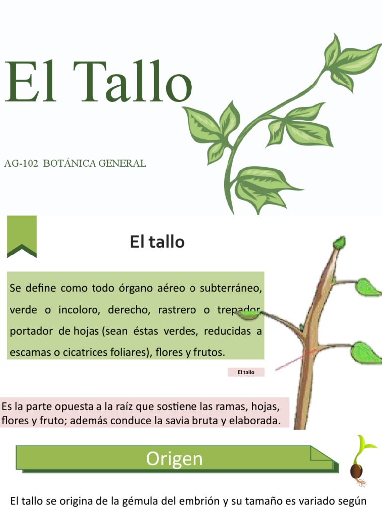 El tallo se origina de la gémula del embrión y su tamaño es variado según