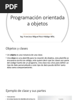 Un programa orientado a objetos es un conjunto de clases que describe el comportamiento de los objetos del sistema Los objetos se comunican mediante mensajes Cada objeto tiene su propio estado, que consta de otros objetos Cada objeto es un ejemplar de una clase (agrupacin de objetos) Todos los objetos que son ejemplares de una misma clase pueden realizar las mismas acciones Las clases estn organizadas en una jerarqua de herencia