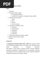 Angel Morales y Francisco Segovia. Programacin orientada a objetos, Aplicaciones con Smalltalk. Madrid: Ed. Paraninfo, 1993. H. Deitel y P. Deitel. Cmo programar en JAVA. Mxico: Prentice Hall, 1998. Weiss, Mark Allen. Estructura de datos: compatible con Java 2 / Mark Allen Weiss. Madrid : Addison Wesley, 2000. 776 p. Bertrand Meyer. Construccin de software orientado a objetos. 2a. ed. Madrid: Prentice Hall, 1998. James Martin y James Odell. Anlisis y diseo orientado a objetos. Mxico: Prentice Hall, 1992.