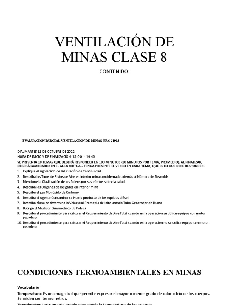 CONDICIONES TERMOAMBIENTALES EN MINAS